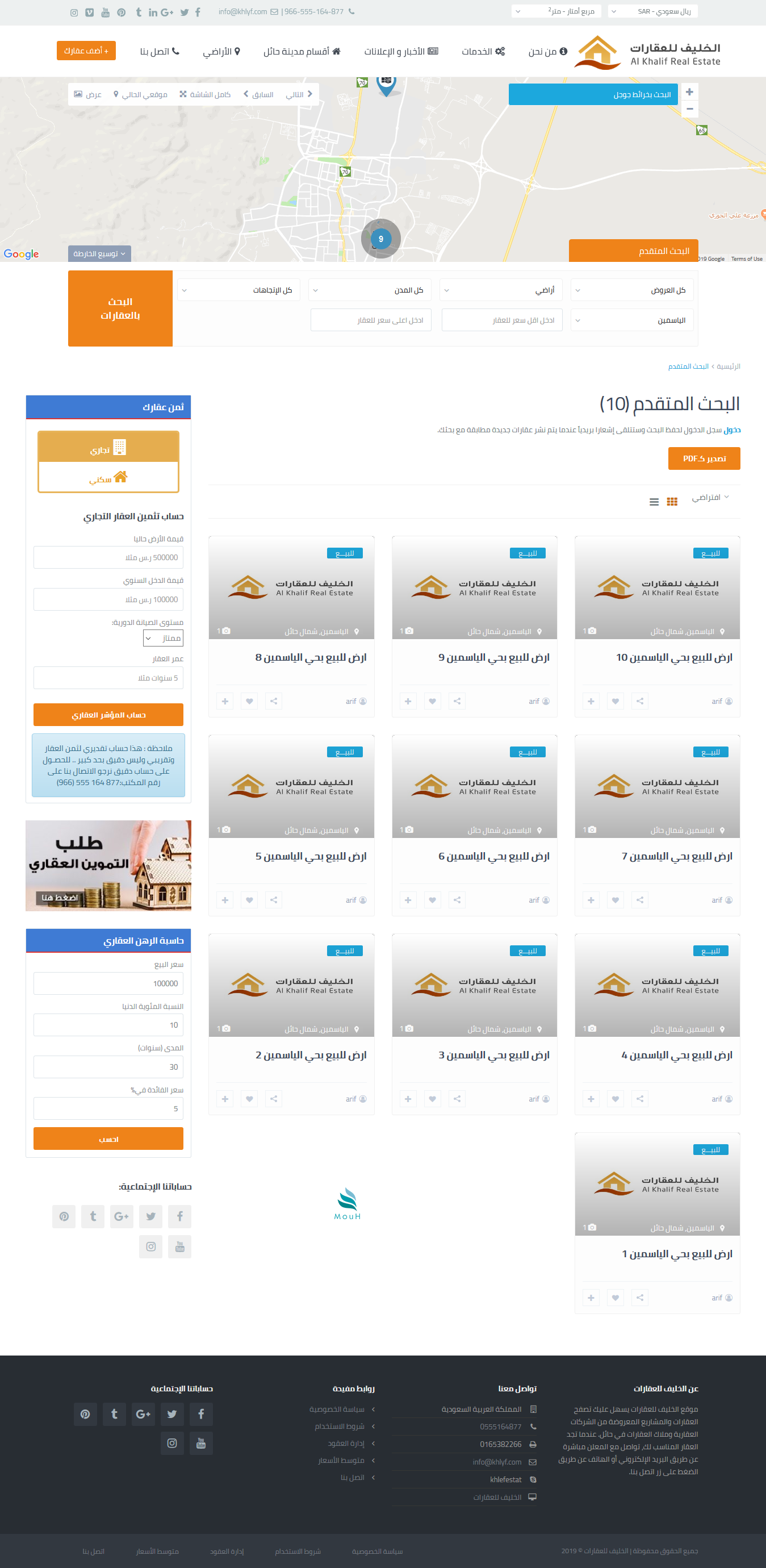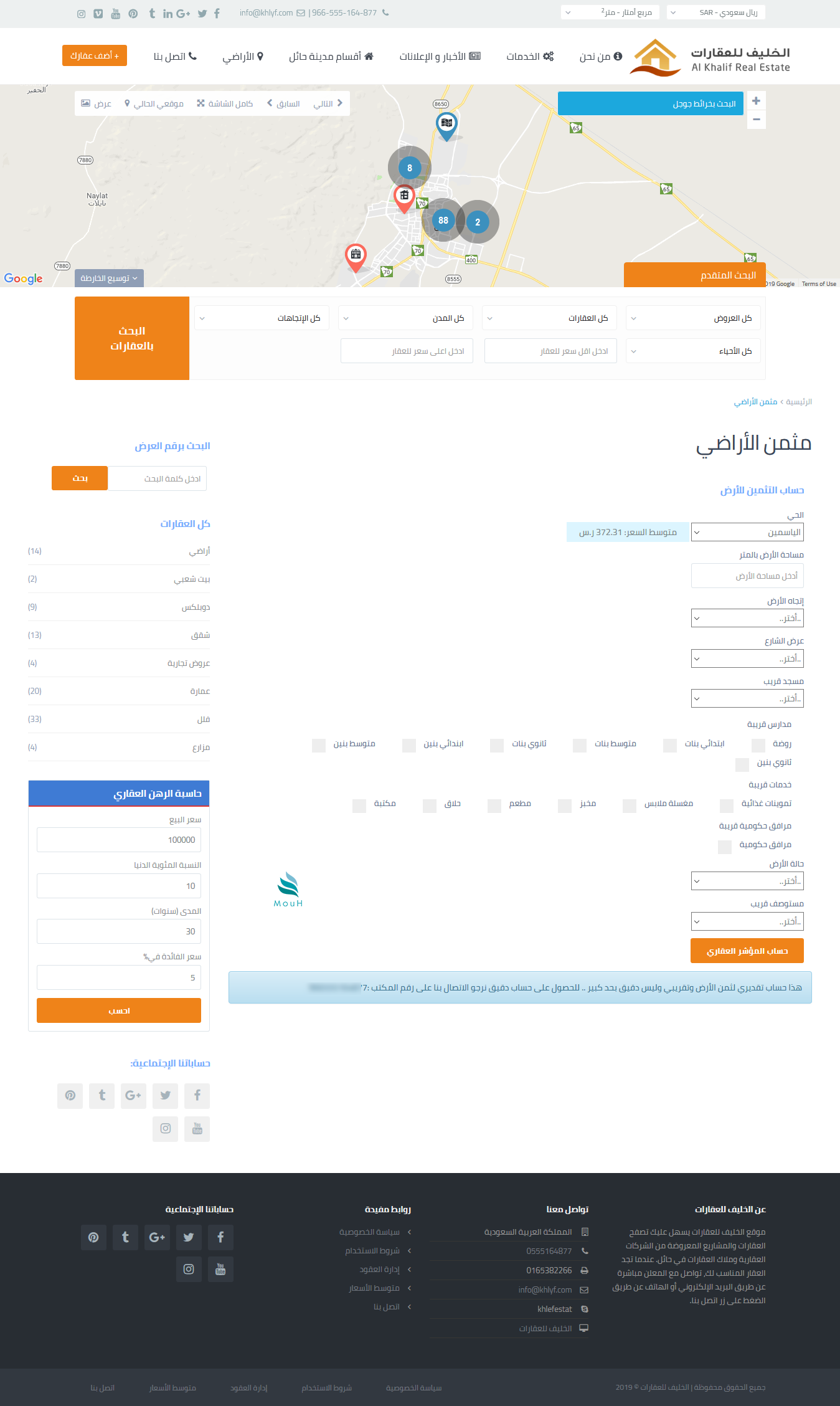 موقع عقارات مع امكانية الاطلاع على متوسط اسعار العقارات بناء على المنطقة المحددة
