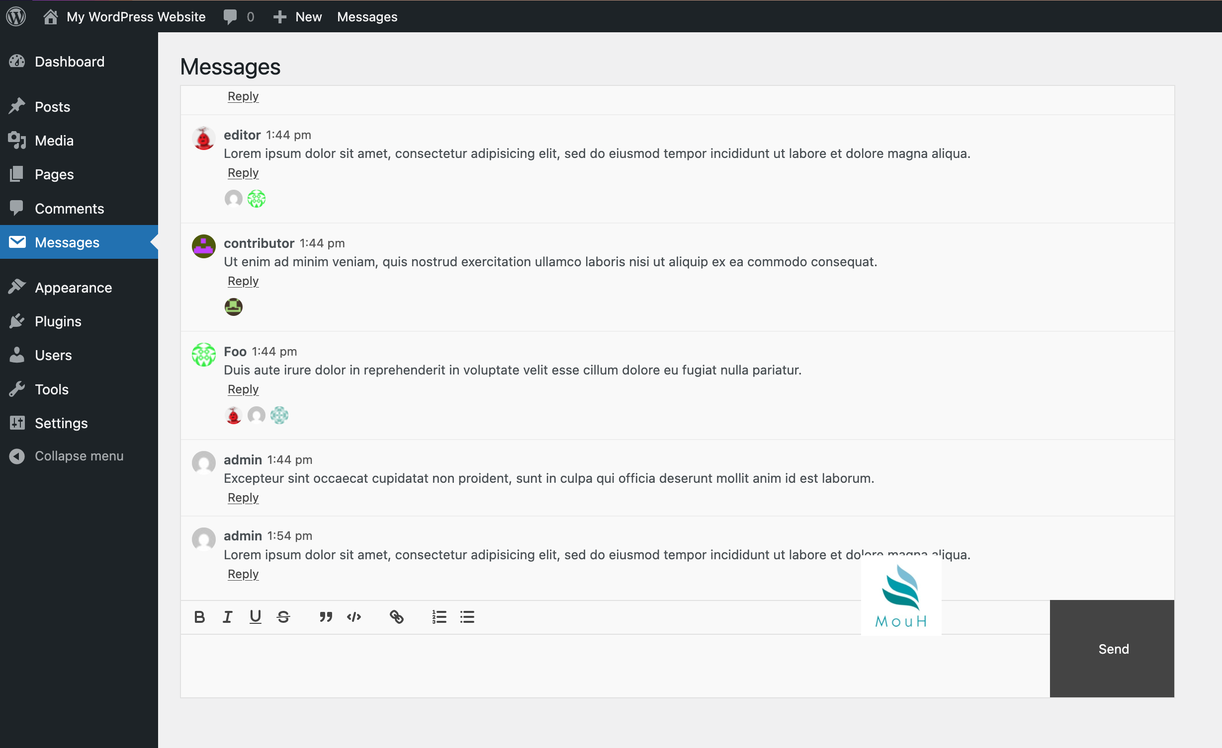 Messages in the admin dashboard.